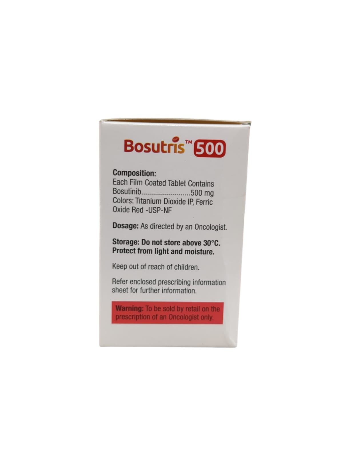 Bosutris 500mg Tablet contains the active ingredient bosutinib. It belongs to the group of medications called Tyrosine kinase inhibitors. It is indicated to treat adult patients with a type of leukemia known as Philadelphia chromosome-positive (Ph-positive) Chronic Myeloid Leukaemia (CML) who have been newly diagnosed or for whom earlier CML treatments have either failed or have not worked or are not suitable. Philadelphia chromosome-positive chronic myelogenous leukemia is a blood cancer in which the body produces too many of a specific kind of white blood cell called granulocytes.