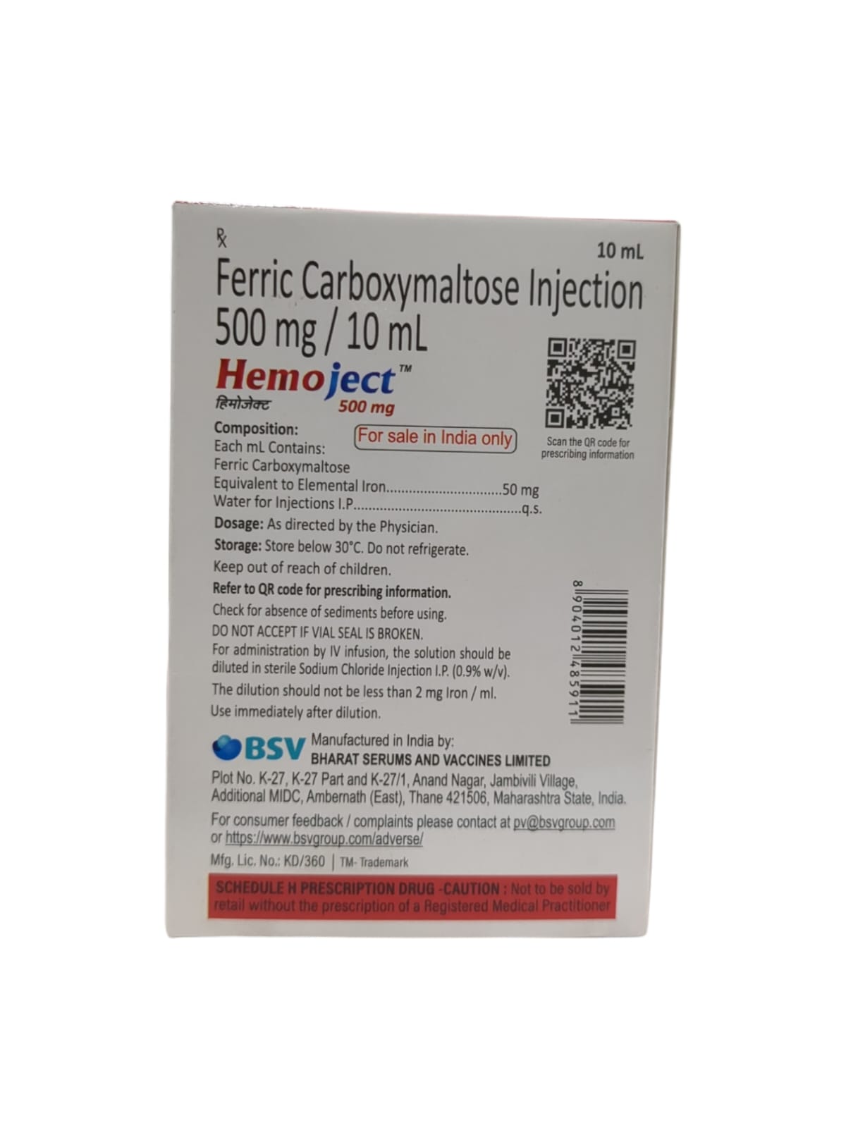 Hemoject 500mg injection contains the active substance Ferric carboxymaltose. It belongs to the group of medications called iron replacement products. It is used to treat iron-deficiency anemia (decreased RBC due to lower levels of iron in the body) in adults and pediatric patients who cannot tolerate oral iron or when oral iron supplements are ineffective. It is also indicated to treat iron deficiency anemia in adults with chronic kidney disease who are not on dialysis. This medicine is not recommended for pediatric patients less than one year of age.