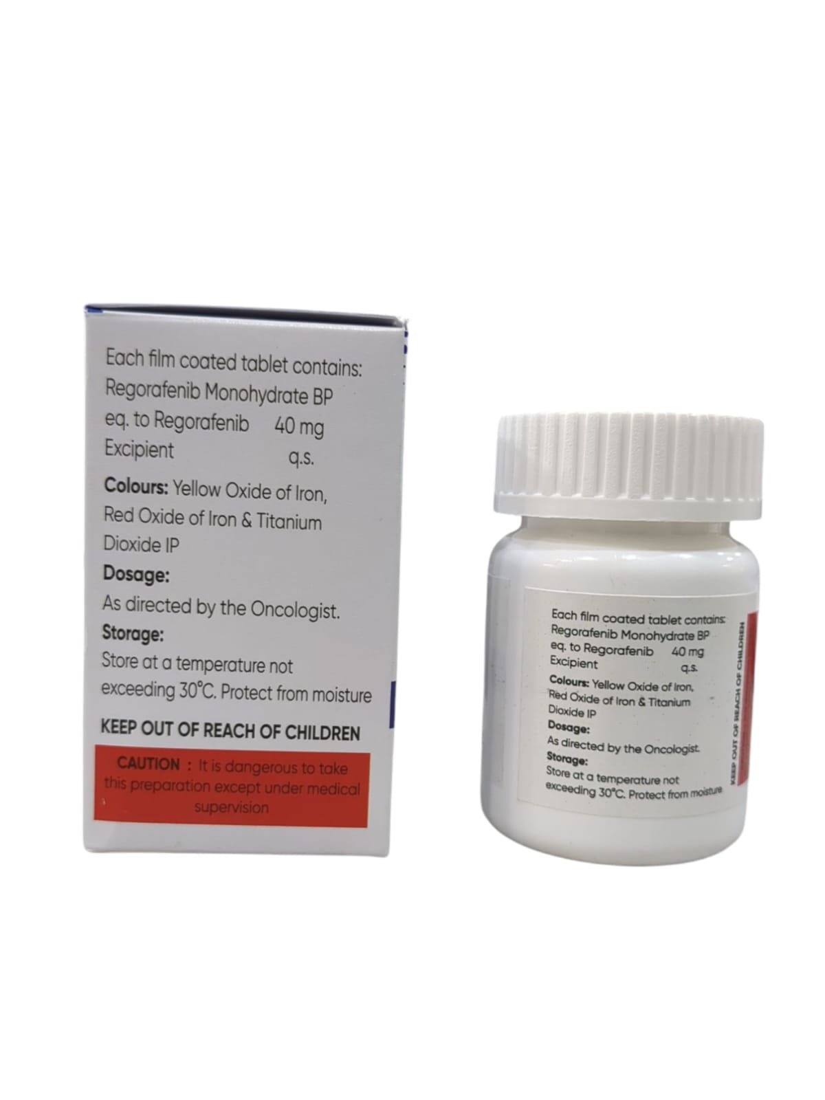 Regomed 40mg Tablet is a Tyrosine kinase inhibitors used in the treatment of cancer of colon and rectum.